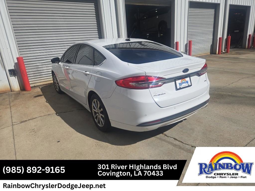 The Ford Fusion features a hands-free Bluetooth phone system. Protect the vehicle from unwanted accidents with a cutting edge backup camera system. This Ford Fusion has a clean CARFAX vehicle history report. This 2017 Ford Fusion shines with clean polished lines coated with an elegant white finish. This model has a 4 Cyl, 2.5L high output engine. This 2017 Ford Fusion is front wheel drive. Help alleviate lower back pain with the driver seat lumbar support in this 2017 Ford Fusion . Easily set your speed in this unit with a state of the art cruise control system. Increase or decrease velocity with the touch of a button. The Electronic Stability Control will keep you on your intended path. Enjoy the tried and true gasoline engine in it. This vehicle has an automatic transmission. Mid-sized cars are the perfect size.