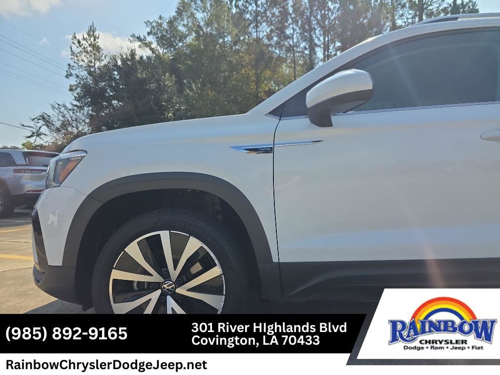 This model enhances safety with a blind spot monitor, alerting drivers to potential dangers in adjacent lanes. Keep your hands warm all winter with a heated steering wheel in this small suv . This 2024 Volkswagen Taos keeps you comfortable with Auto Climate. This vehicle offers Android Auto for seamless smartphone integration. This 2024 Volkswagen Taos offers Apple CarPlay for seamless connectivity. This vehicle has automated speed control that adjusts to maintain a safe following distance, enhancing highway driving convenience. This small suv's Forward Collision Warning feature alerts drivers to potential front-end collisions. Protect the Volkswagen Taos from unwanted accidents with a cutting edge backup camera system. The Volkswagen Taos features a hands-free Bluetooth phone system. This model has a clean CARFAX vehicle history report. The leather seats in the vehicle are a must for buyers looking for comfort, durability, and style. This vehicle is a certified CARFAX 1-owner. Start this Volkswagen Taos from inside with remote start.